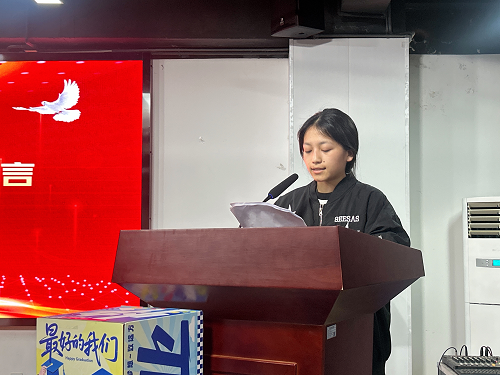 学生代表杨周银同学分享了自己在校的学习与生活感悟。从她真挚的话语中,我们感受到了毕业生们对校园生活的深深眷恋,对师长同学的不舍,以及对未来的无限憧憬。青春正好,未来可期,愿同学们都能带着这份热情,勇敢地追逐自己的梦想,奔赴更加灿烂的明天。