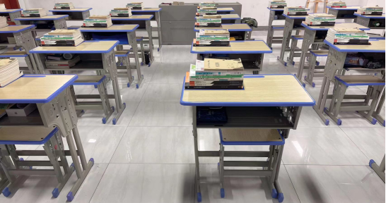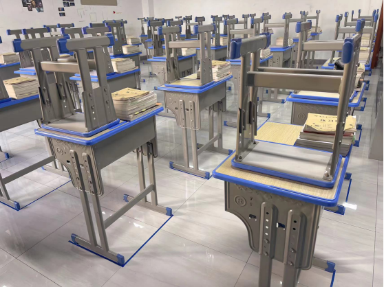 5.椅子放于课桌下中间位置,左右均间隔10公分。