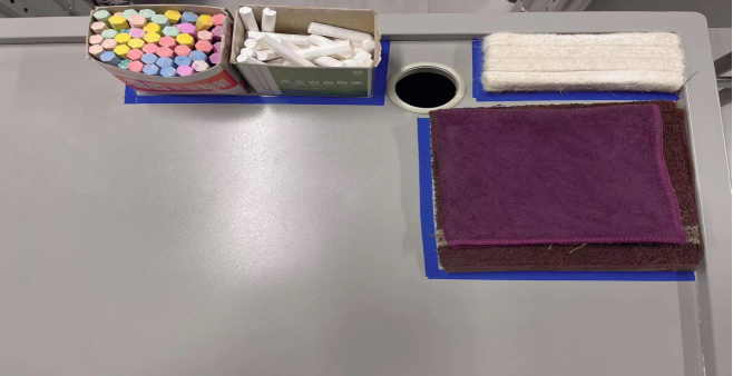 3.抹布叠整齐放在黑板擦下方。
