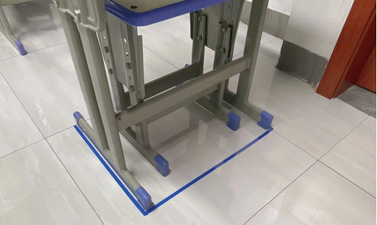 2.课桌之间摆放距离以教室面积为准。(课桌放于胶带框内)