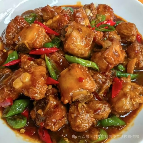 午餐剁椒排骨、青瓜木耳炒蛋、咖喱鸡丁、文蛤菜