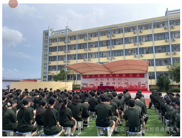 全校师生齐聚一堂,现场气氛庄重而热烈。活动伊始,于友林校长发表了重要讲话,强调了法制教育对于青少年健康成长的重要性,并对观音山派出所警官的到来表示最诚挚的欢迎和感谢。