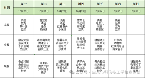 启东科信技工学校每周食谱-2025.10.20-2025.10.26