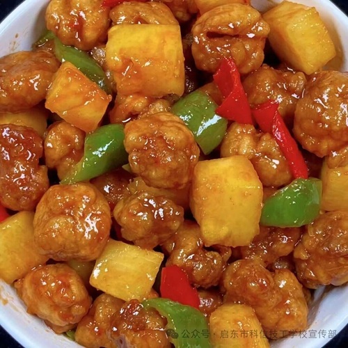 午餐排骨冬瓜、西葫芦肉片、锅包肉、炒青菜