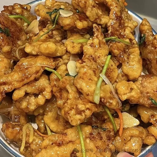 午餐炸翅根、肉沫蒸蛋、烩三鲜、大白菜