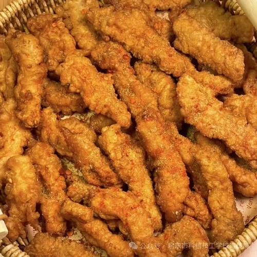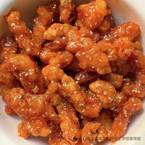 午餐炸小酥肉、干丝炒肉丝、肉皮三鲜、大白菜