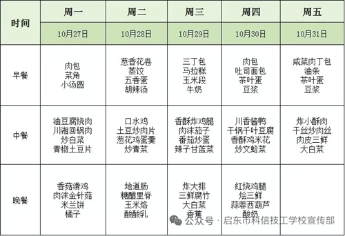 启东科信技工学校每周食谱-2025.10.27-2025.10.31