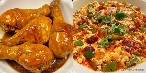 丰富午餐香卤鸡腿、肉沫茄子、椒麻豆腐、香菇青菜