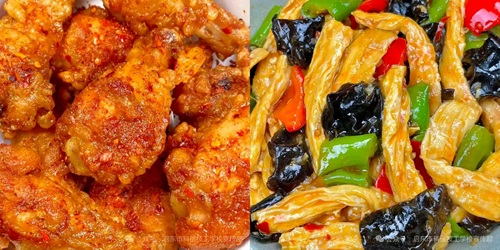 合理晚餐红烧翅根、面筋肉片、青椒百叶、酸酸乳