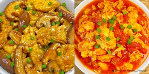 合理晚餐香菇滑鸡、杏鲍菇炒蛋、白菜油渣、酸奶