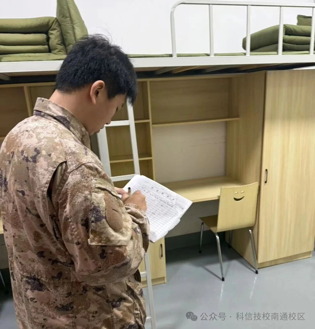 镜头下,教官俯身查看床铺是否平整,伸手检查储物柜是否分类清晰;镜头里,我们的宿舍窗明几净,被子叠成方方正正的 “豆腐块”,洗漱用品排列得整整齐齐,衣物收纳得井然有序。这一张张照片,不仅是教官认真履职的见证,更是同学们践行内务标准的生动体现。