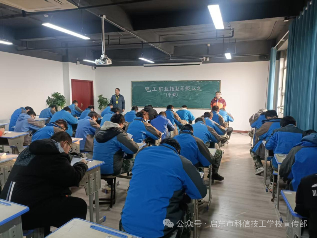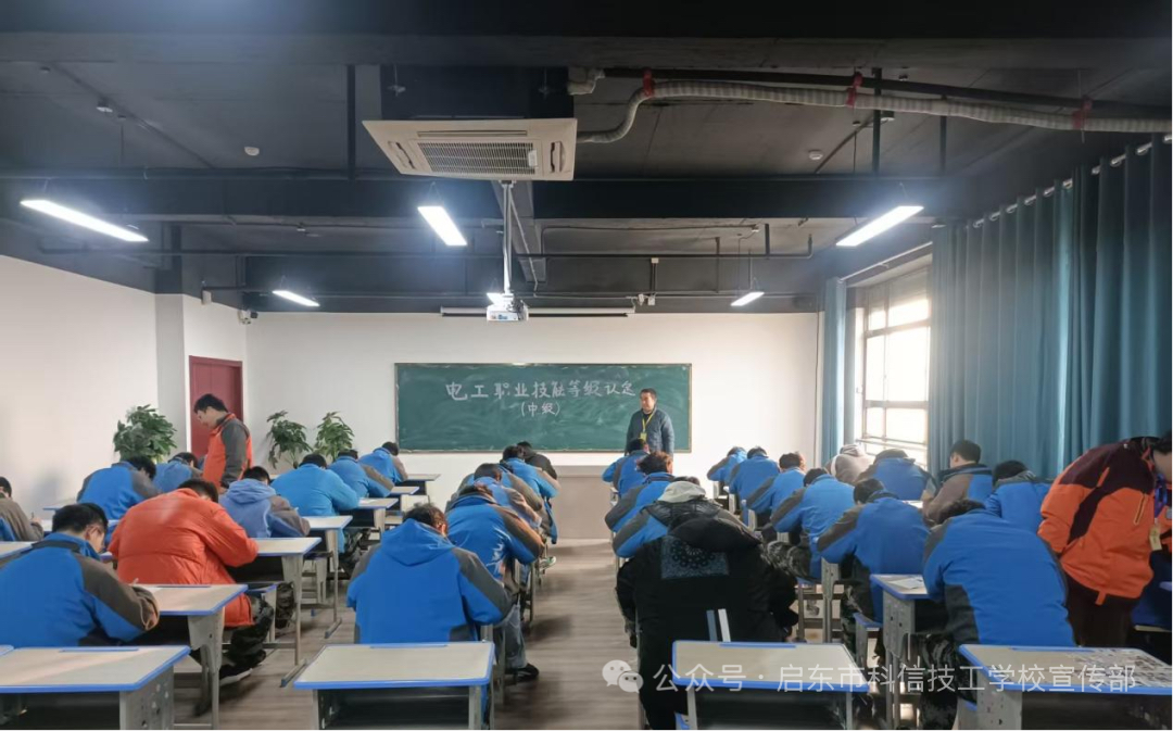 2025年12月30日,在辞旧迎新的特殊时刻,启东市科信技工学校的电工中级职业技能等级认定考试正式拉开帷幕。考场内,参考学员们全神贯注伏案作答,用专业知识为自己的2025年交上一份技能答卷。