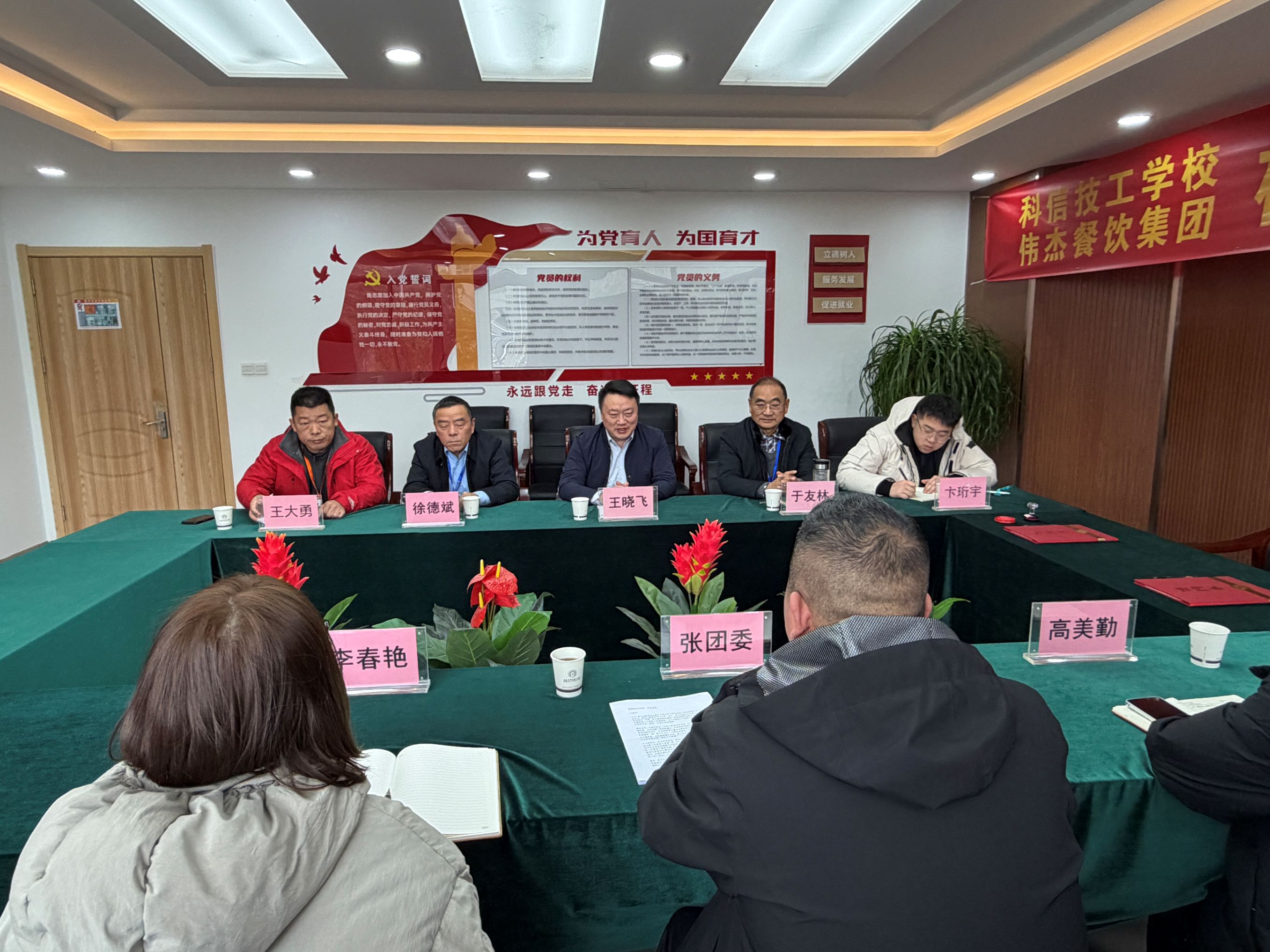 仪式上,王晓飞书记发表致辞,对伟杰餐饮集团领导们的到来表示热烈欢迎,并介绍了我校烹饪专业的办学特色、师资力量和人才培养成果。王书记表示,校企合作是打通人才培养与行业需求“最后一公里”的关键举措,此次与实力雄厚的伟杰餐饮集团携手,既是学校深化办学模式改革、提升人才培养质量的重要一步,也是服务地方产业、实现校企互利共赢的有益探索,学校将全力保障合作落地见效,携手培育符合行业需求的复合型餐饮人才。