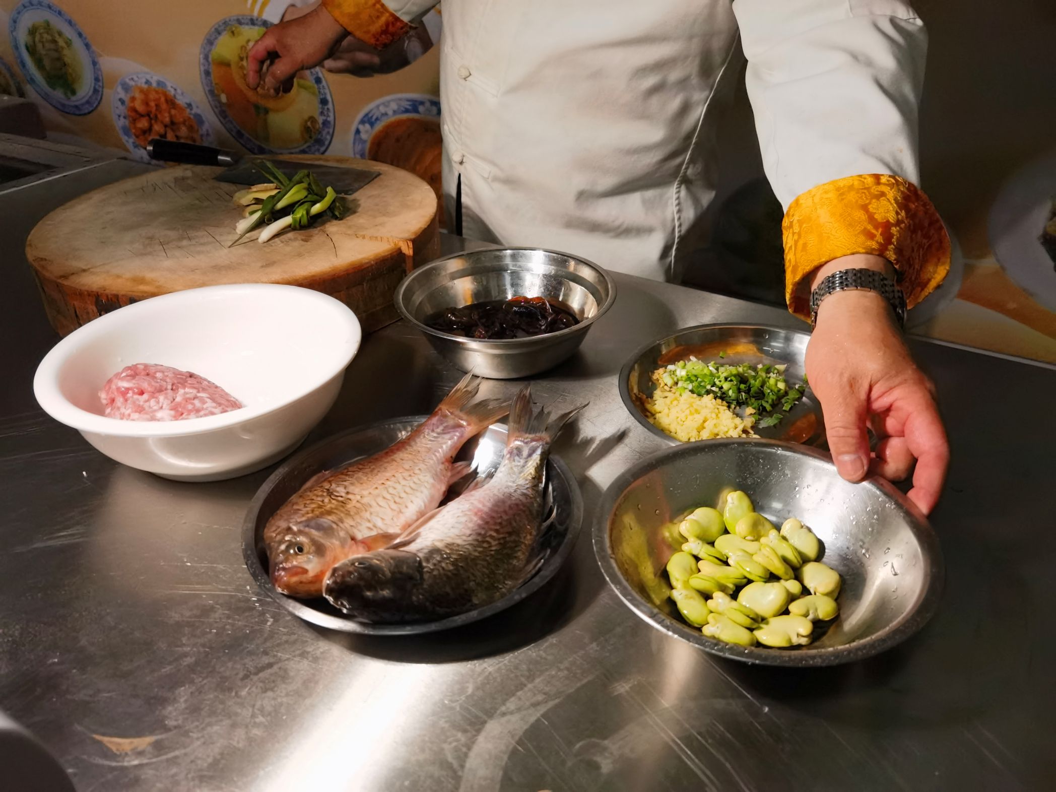 最后这道青豆瓣鲫鱼汤,民间都说"谷雨一碗汤,不用郎中帮"。清明前后到谷雨,鲫鱼抢食好欢喜,四月鲫鱼最肥美,配青豆瓣,健脾祛湿,补充营养,是谷雨时节的养生良方。汤色奶白,鱼肉鲜嫩,豆瓣酥香,喝下去浑身舒畅。煎鱼用猪油增香,大火煮沸转中火熬至汤白,如同读书,循序渐进,方得醇厚。一碗鲫鱼汤,半部春日养生经,读书与食鲜,在此刻完美相融。