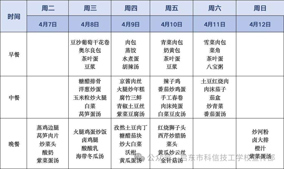 启东市科信技工学校每周营养食谱2026.4.7-2026.4.12