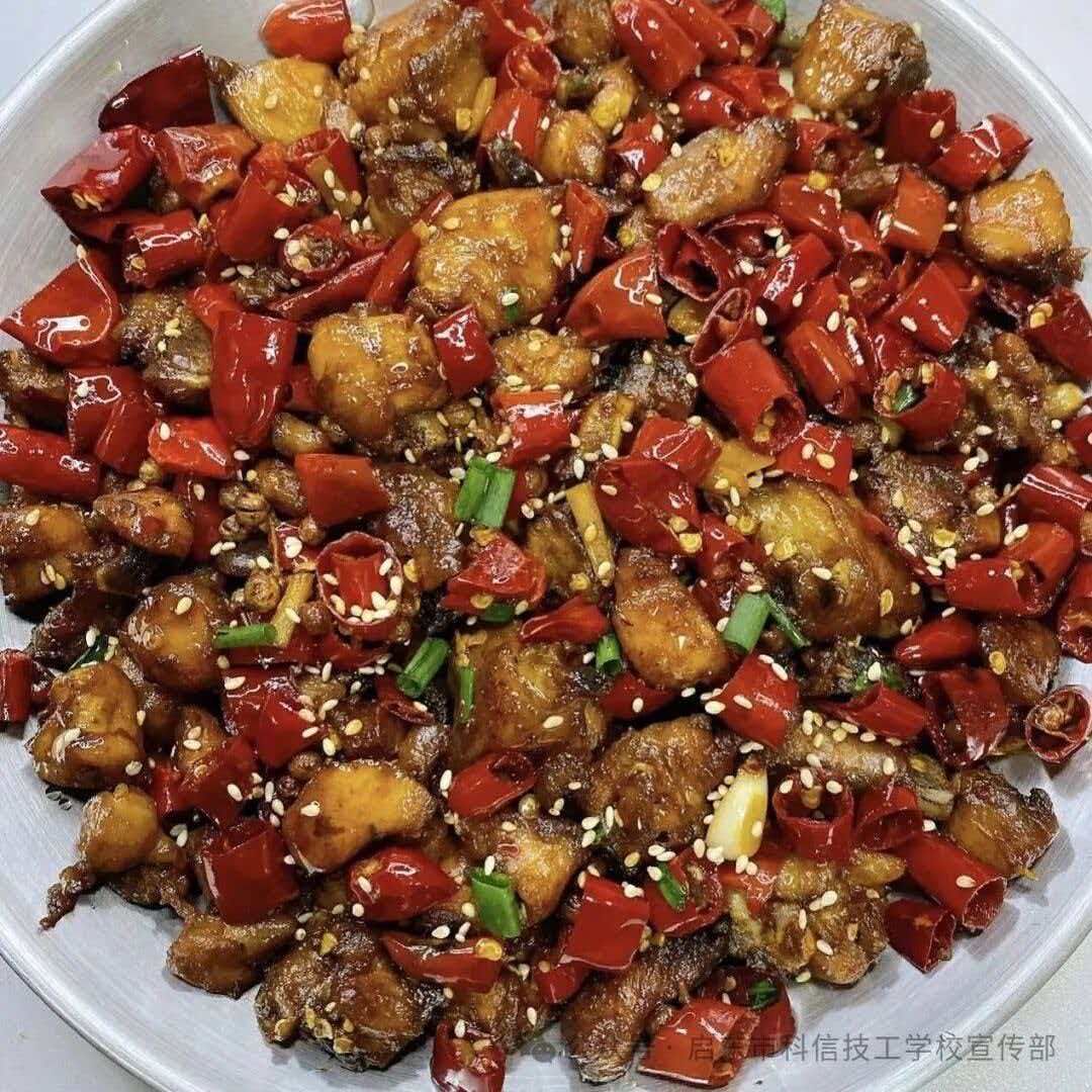 辣子鸡、番茄炒鸡蛋、手工春卷、肉沫炖蛋、白菜豆皮汤