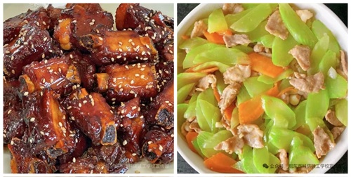 红烧大排、芹菜虾糕、鱼香肉丝、蒸南瓜