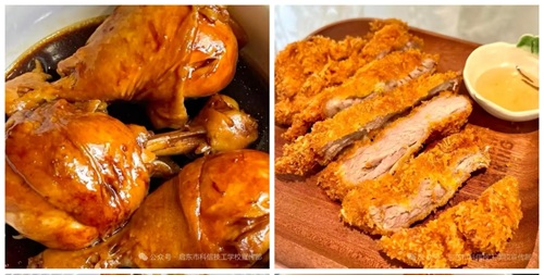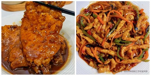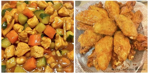 炸鸡翅根 、宫爆鸡丁、三鲜腐竹、孜然面筋