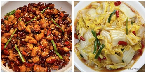 川香辣子鸡、酸菜肉片、炒白菜、酸奶