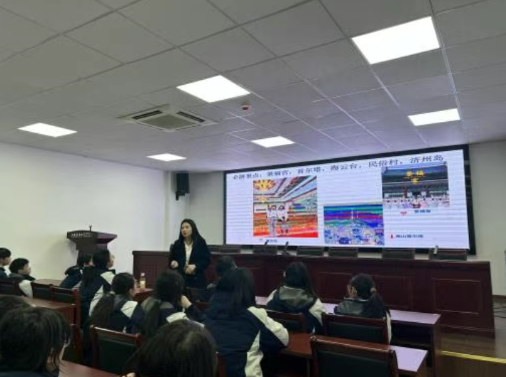 在旅游推荐环节,娜娜老师结合十年间的旅行经历,系统梳理了韩国的旅游文化资源。以明洞为中心的首尔攻略、海云台,民俗村等必游景点,到济州岛的自然景观,引导学生以更为多元的视角理解韩国的地域文化与旅游资源。