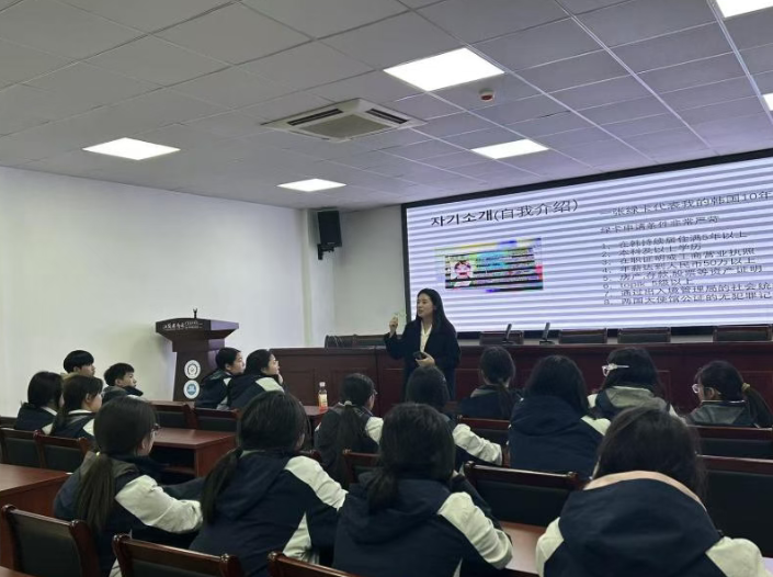 讲座伊始,娜娜老师以一张象征着她在韩十年生活积淀的“韩国绿卡”为切入点,展开了自我介绍。她表示,这张绿卡不仅是她在韩合法长期居留的身份凭证,更承载着她从初识韩国到融入当地社会的完整历程。以此为引,她迅速拉近了与学生们的距离,并激发了大家对韩国社会文化的好奇与讨论热情。