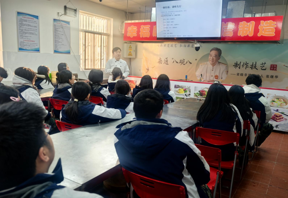 未来,我校将持续深化“专业培养+非遗传承”课程体系建设,推动“张继华大师工作室”与我校“文旅烹饪产业学院”深度融合,打造集人才培养、技艺传承、创新研发、产业落地于一体的,以“南通八碗八”非遗技能人才培养为主体的职教新高地,让南通优秀的非遗传统美食文化在年轻学子手中“传起来、承下去”,为服务南通地方经济发展和美食文化传播贡献一份力量。
