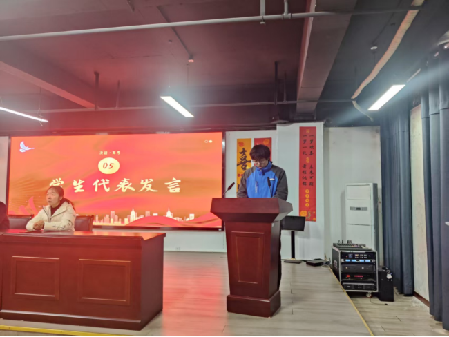 班主任与任课教师代表相继发言,他们细数与学子朝夕相伴的奋斗点滴,既送上备考的实用技巧,更许下全程护航的坚定承诺,成为科信学子冲刺路上最坚实的后盾。学生代表满怀赤诚登台,以青春之名感恩师长教诲、不负父母期盼,道出全体高三学子全力以赴、冲刺高考的共同心声,点燃全场奋斗热情。